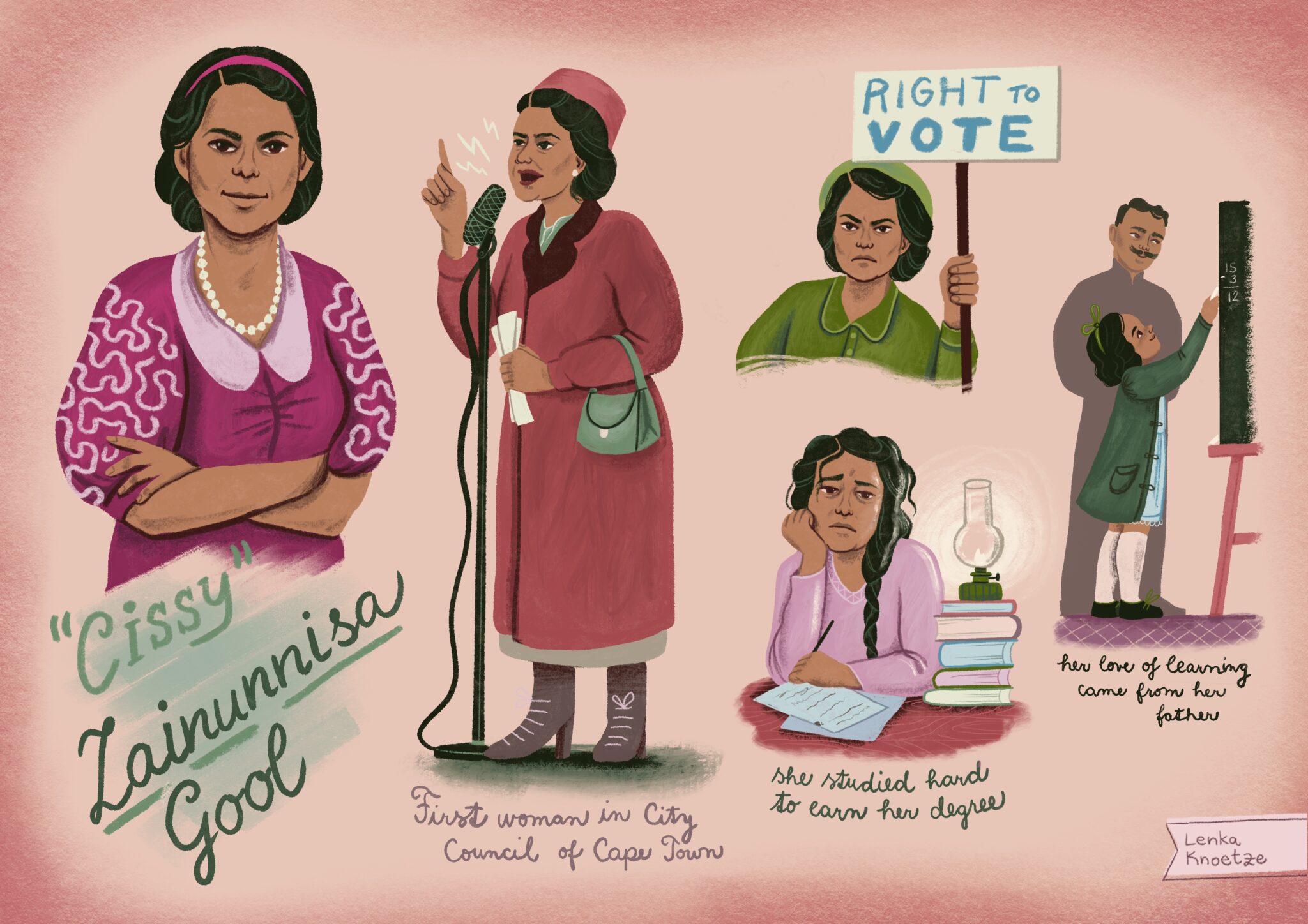 Lenka Knoetze is a Slovak illustrator based in South Africa who creates playful, textured children’s illustrations for ages 4–12, featuring hand-drawn details, bright limited palettes, decorative elements and curious compositions that invite exploration. Her creative path — from early doodling and arts school through theology studies and Christian mission work — shapes the heart of her storytelling, which spans multicultural experiences and meaningful narratives; since 2021 she has worked part-time on design and illustration for sign language education alongside deaf colleagues. Inspired by animals, nature, environmental care, diverse cultures, true and historical stories, and humor, Lenka illustrates primarily in Procreate and designs in Adobe CC, collaborating closely with authors and editors to create beautiful, fun and meaningful stories that bring people together.