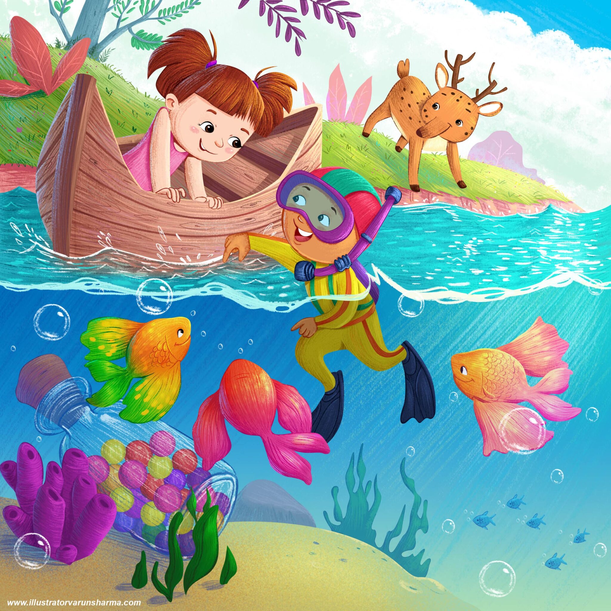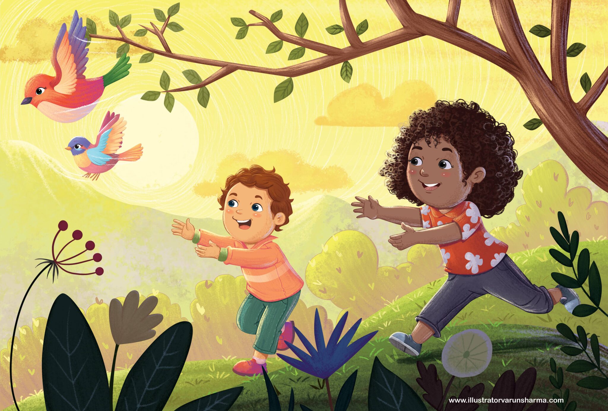 Over the course of his career, Varun has collaborated with international publishers and authors on picture books, educational series, and character-led narratives, developing a versatile portfolio that balances strong visual composition with narrative clarity. His illustrations are known for their rich colour harmonies, thoughtful details, and the ability to capture authentic childhood emotions.